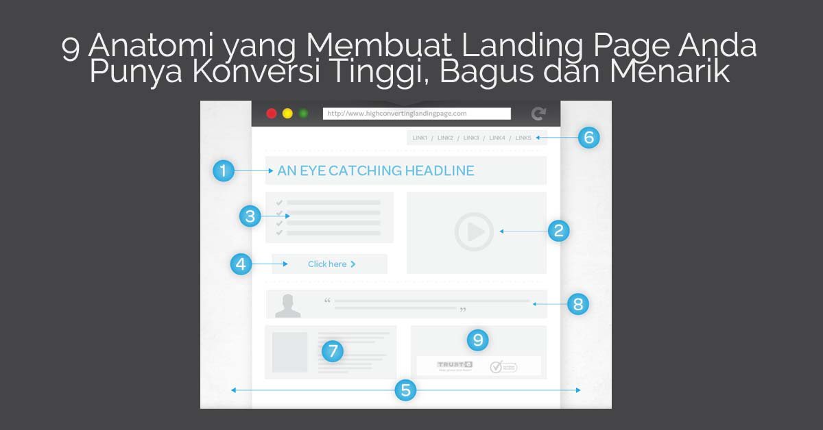 Untuk menghasilkan konversi yang tinggi melalui landing page, Anda harus memahami 9 anatomi landing page berikut ini :